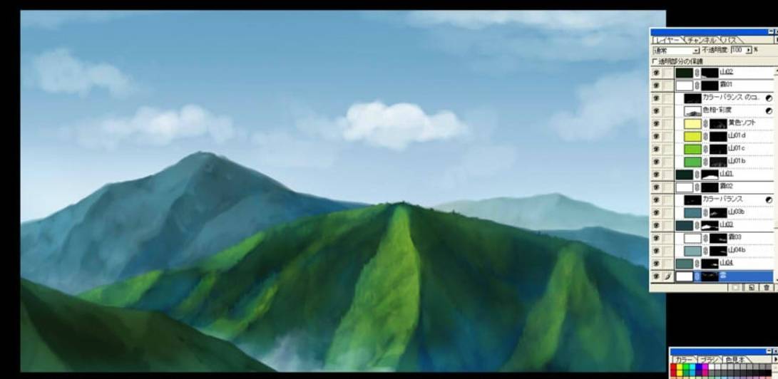接下来是里面的山,也是根据相同的感觉来进行涂色。