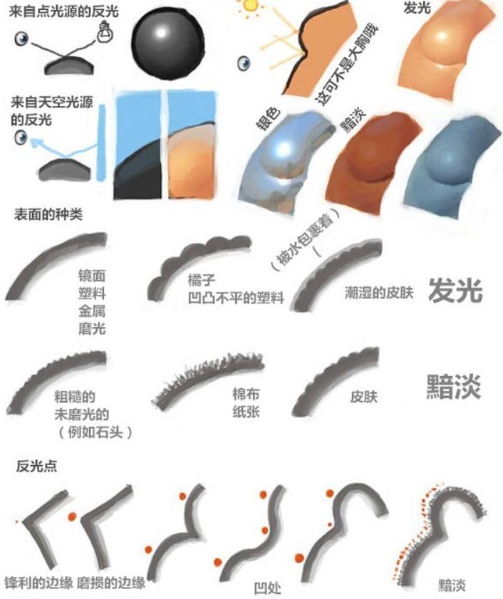 · 任何的反光。物体表面是否发光潮湿的,并且是否有棱角,所以就像天空一样反射了一束光源?