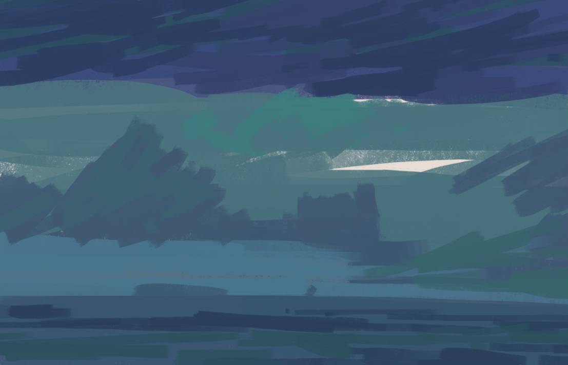 这一步大家要画出一些远景的细节及颜色变化。