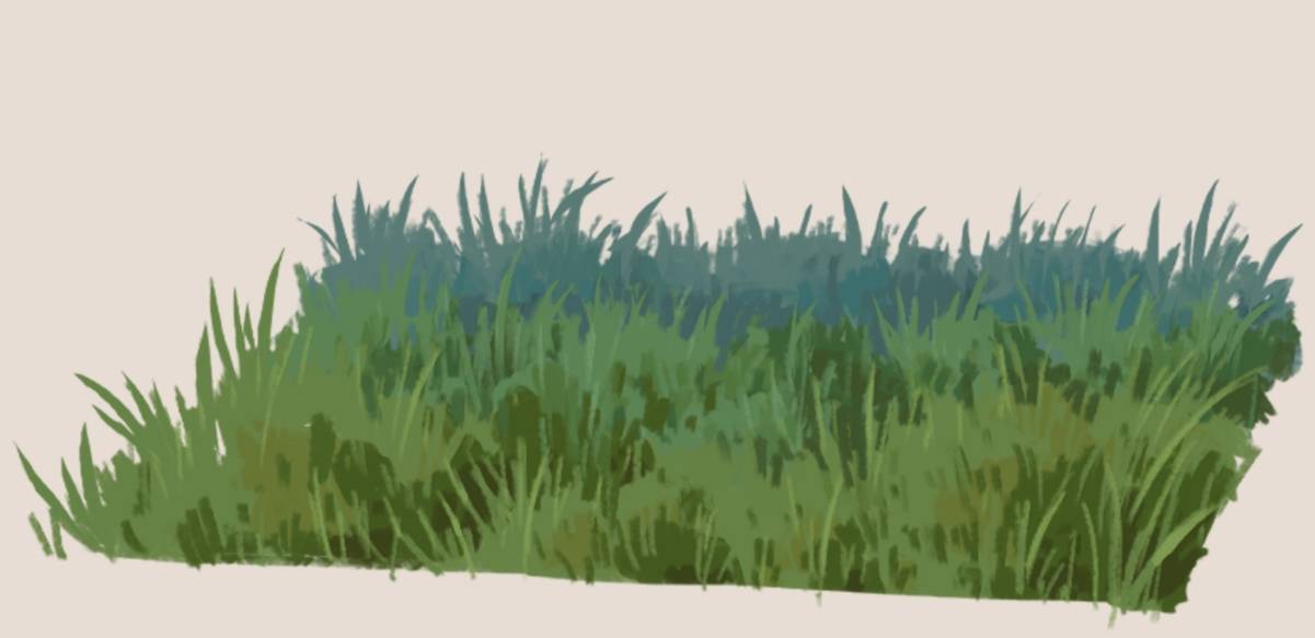 小草的每层叶子都是需要做虚实变化的。一般是凸出的地方实,凹陷的地方虚化处理。这样可以增加草叶子的融合感。(整体感)
