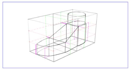 在一个平面进入透视状态下我们知道是存在透视衰减,那么一个进入透视状态的转折面会怎么样呢?我们来看一下,观察下图的六边体,青色面积区域在转折处发生急剧的透视衰减。