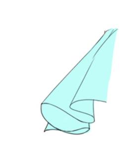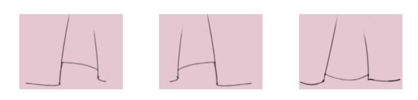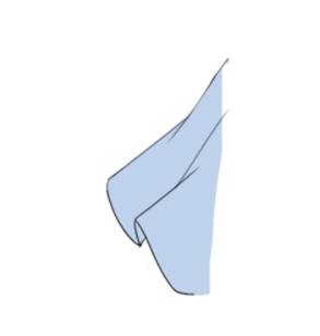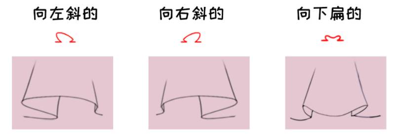 大家先来看一下处于侧面的裙摆。这一小片裙摆处于微微上扬或者是略仰视的状态,所以我们能看到底部的形状。
