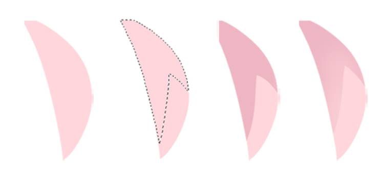 确定了褶皱的走向后,可以灵活运用选区工具来框选出褶皱的形状。再用软橡皮或涂抹工具来柔化边缘,这个时候,就要注意边缘的清晰度和渐变的平整性了。
