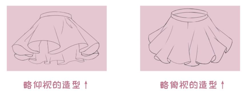 这一小片裙摆处于下落或春是俯视的状态,所以我们能看不到底部的形状。