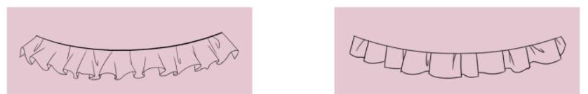组合时,荷叶边的起伏应随着裙摆的起伏而起伏,要注意遮挡关系和层次变化,褶皱的排列和形状也是尤为重要的。