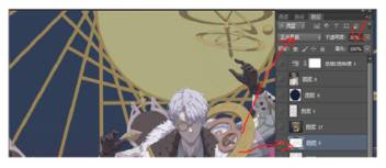 先用魔棒工具点击色板,然后选择二分和闭塞的图层进行调整。简而言之:暖色的暗部往暖色偏,冷色的暗部往冷色偏。