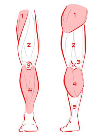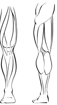 简化:简化的方法是将肌肉组合在一起,腿的前面可以分为4个肌肉组,后面分为5个。