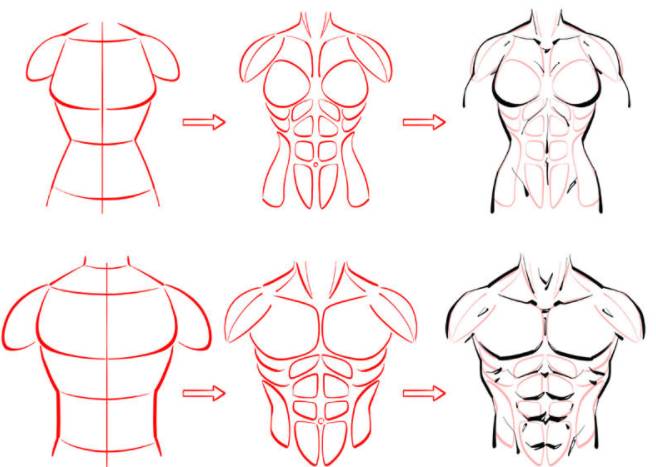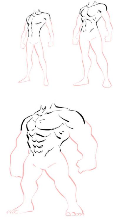 对于巨大且强壮的身躯,几乎所有的肌肉都要很清晰地画出来!