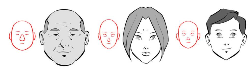 无论男女老少,机器人还是妖精,脸部绘画都是一样的。一些大小与位置可能会有所不同,但整体过程基本是相同的。