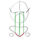 两侧胸大肌中间各画一条垂线。