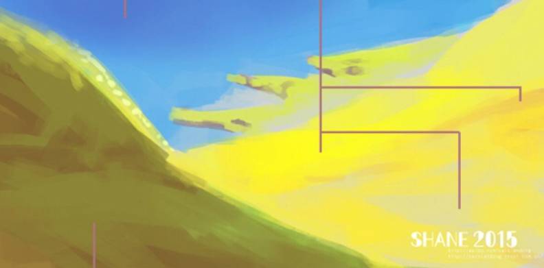 整片花海被阳光照亮,黄色与黄色之间互相影响变得更加泛黄了,同时把暗面投影都照亮成黄色了,所以这一大片中景你没有看到投影的部分,恰恰表现了花了纯度和光的混合感。在表现的时候需要注意不要让每个部分都一样纯,部分镂空或者画暗一些,可以形成丘陵的结构线,形成隐形的空间和体积。