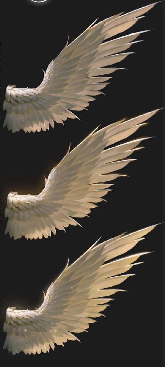 绘制的时候可以多放一些翅膀的造型参考,参考类型要有照片的也要有别人画的(照片参考提供的是翅膀的细节以及真实的羽毛造型的效果,找到羽毛以及翅膀最真实的状态。别人画的图是提供一些绘制效果上的参考,比方说别人在画翅膀的时候是怎么考虑大的剪影造型以及羽毛之间的组合节奏的,学习别人是怎么在美感上做提炼的,做到源于生活却又高于生活的效果)。