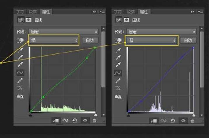 当上述绘制都搞定之后,可以再借助曲线工具调整一下色彩冷暖对比以及整体明暗对比度。(调整蓝绿通道的曲线即可,这样色彩关系会变得更加浓郁)