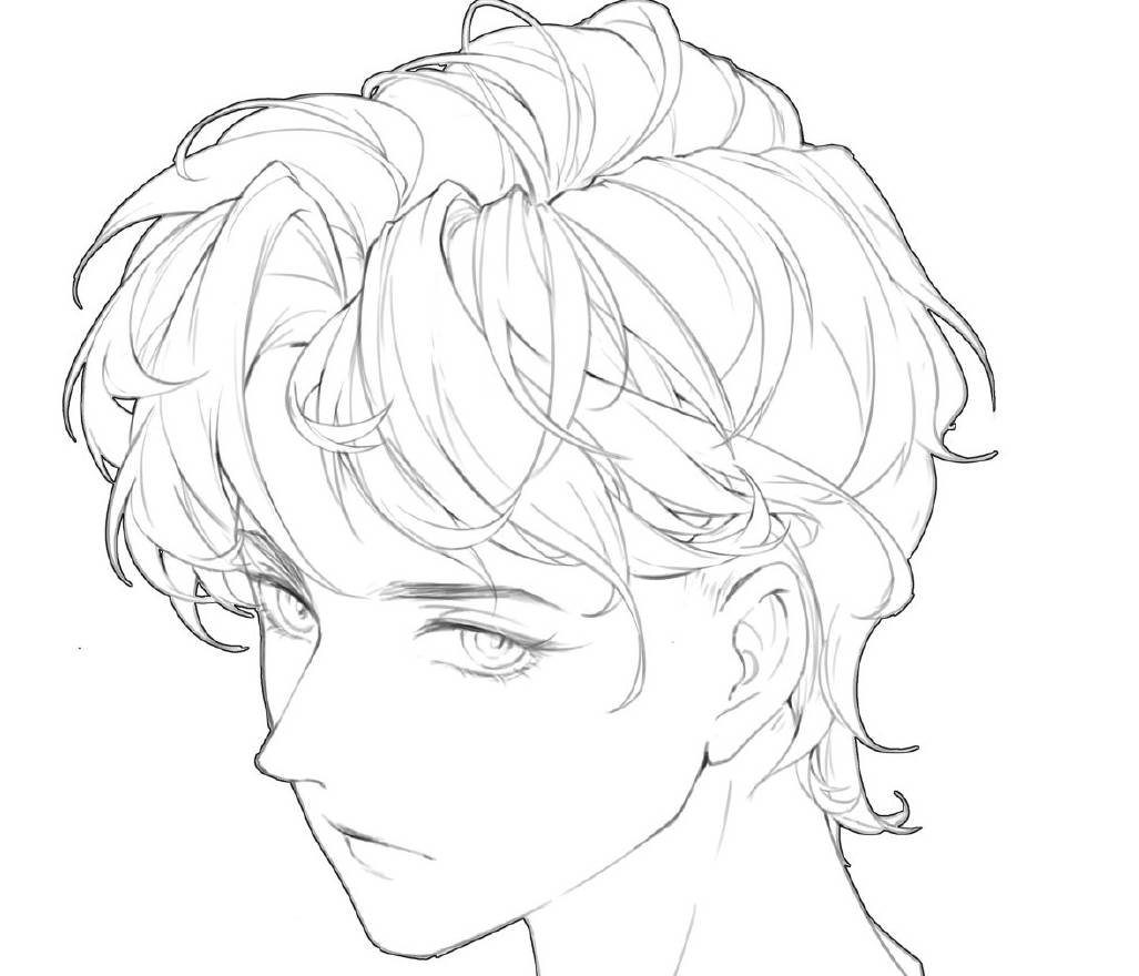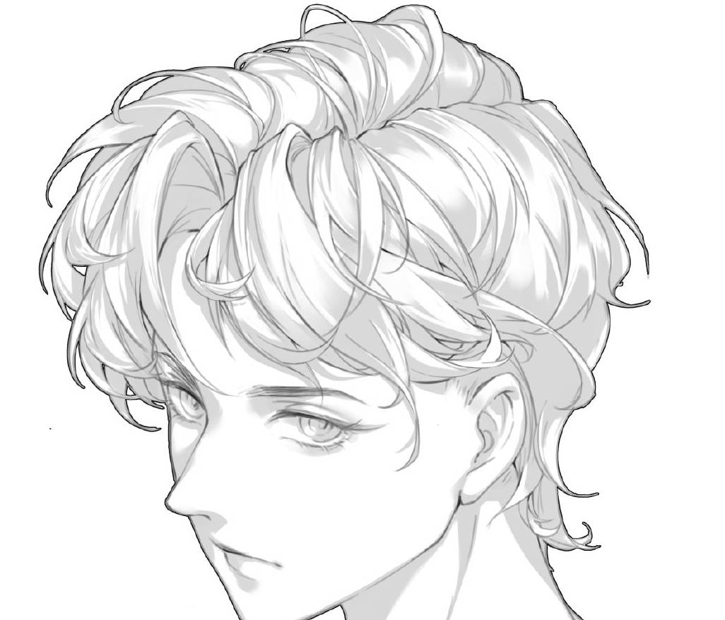 二分,画出头发的暗部,留白受光的位置。在刻画发缕的暗部时,可M多用三角形去卡,这样发丝的质感会更强。