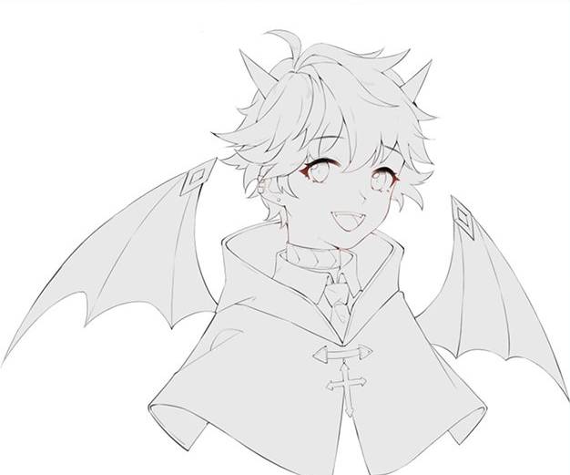 首先,大家先大概绘画出一个小男孩的线稿,画得时候尽量不要断线,线条流畅一些脸部皮肤处的线稿颜色可以调整一下便于上色。