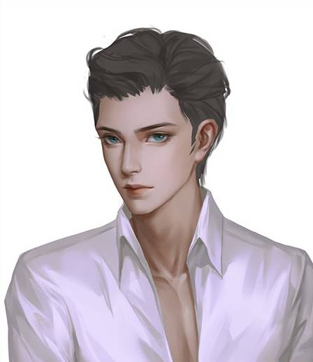 首先准备一个卤蛋头男模,配上经典白衬衫可以hold住各种现代发型。这一步需要注意把主光源以及光色明确一些,这样后续加头发色调和光影也能够匹配起来。头顶后脑勺的轮廓明确可以方便后面确定头发的厚度和贴合头型部分的轮廓。