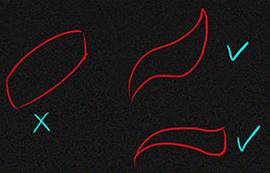 尽量避免正方形、长方形的发缕出现,两端尽量多一些变化和穿插哦。