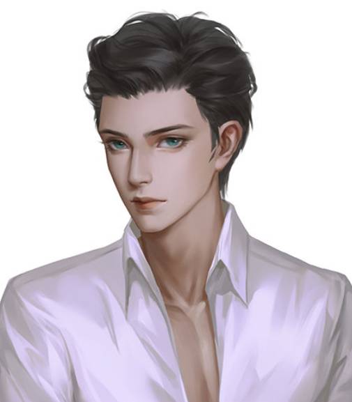 黑发的光泽感在于对高光形状的把握,除了本身体块的起伏,周围的反光天光等其他光源也要考虑进去。这样头发的明暗变化会更多,即使是黑发也不会太沉闷。这一步颜色变化可以暂时单一一点,以固有色的变化为主。