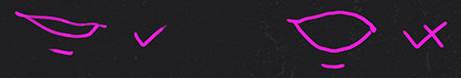 然后嘴巴的部分,哀伤的时候嘴巴会微微张开,嘴角不要太靠上,整个唇内的轮廓偏向于一个梯形。