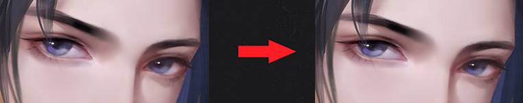 哀伤这个表情非常容易感染画面整体的氛围,在画的时候,可以用强光模式在内、外眼角眼白的部分加一些红在里面。有一种眼睛红了的感觉,与此同时可以搭配一些泪光在眼睛里,情绪会更容易被表达出来。