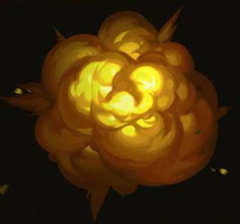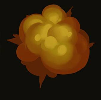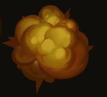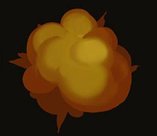 继续在爆炸中心加入明度更高的颜色,此步可以略微使用喷枪,让爆炸中心产生体积,绘画范围记得要比第三步的范围更小。