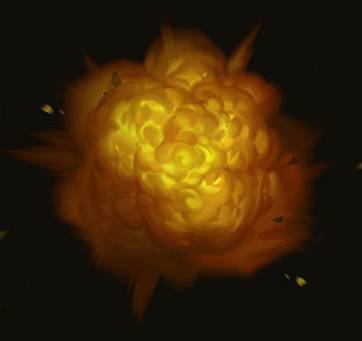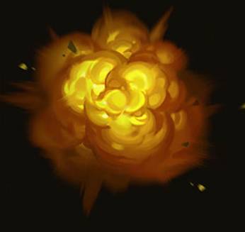 嗯?写实的爆炸效果?其实只要在上一步效果的基础上根据之前的画法继续反复丰富层次就会逐渐产生更多的细节。