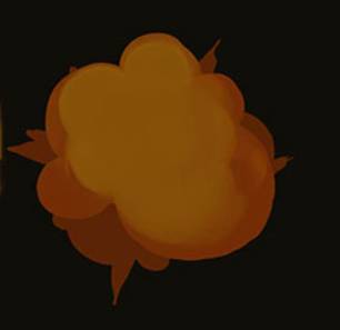 在背后加入一层明度更低的形状,可以带一些尖刺来提现爆炸果。然后结合第一步组合构成的形状,可根据爆炸的方向等情况调整。这里画一个中心爆炸的效果,所以偏向圆形。