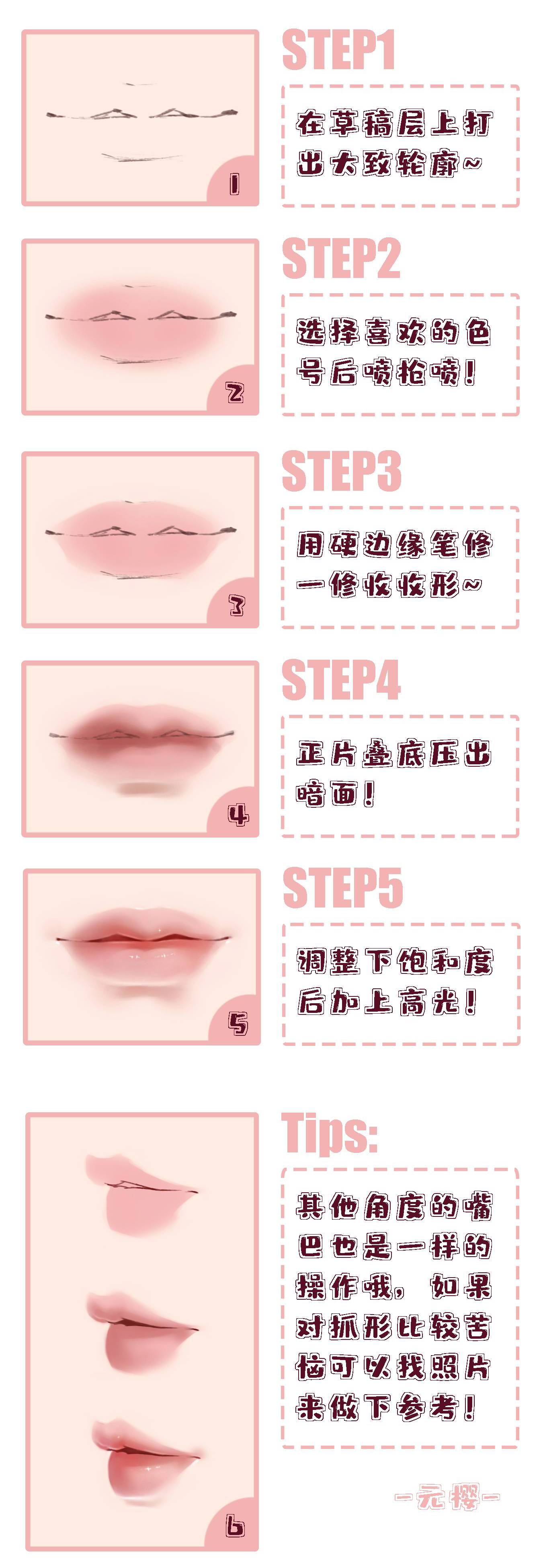 3.然后把嘴唇内侧的颜色加深,外侧加一些浅灰色,以此突出嘴巴的丰盈感。