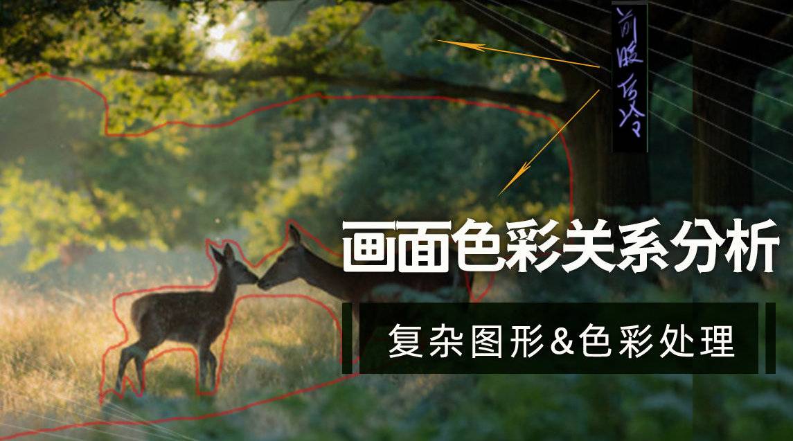 第一步:色彩关系先放一边,先找画面的图形关系;很明显图片有前中后景;